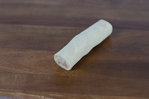 Continue folding up with a tuck-roll-tuck-roll motion. Dip your fingers into the cornstarch slurry and brush all over the final top corner. Finish up the roll, seal and place seam side down.